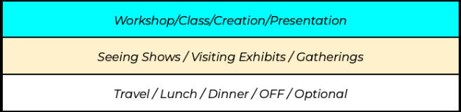 | morning | Welcome Class (Katie, Albert, bigail) | OFF | Exhibit Visit | Exhibit Visit | Exhibit Visit | Reflection (K+A+A) | OFF |