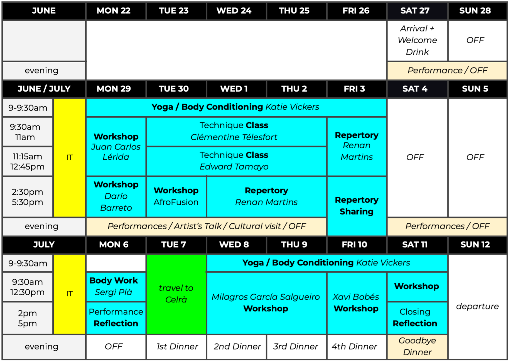 BARNA ARTS invites students on an intimate dance immersion in Barcelona’s vibrant cultural landscape.This trip offers international artists and students the opportunity to meet and learn from local artists, collaborate, and enjoy the cultural richness of the city.The course will take place during the international dance/theatre/music Festival GREC, taking advantage of its amazing offerings.